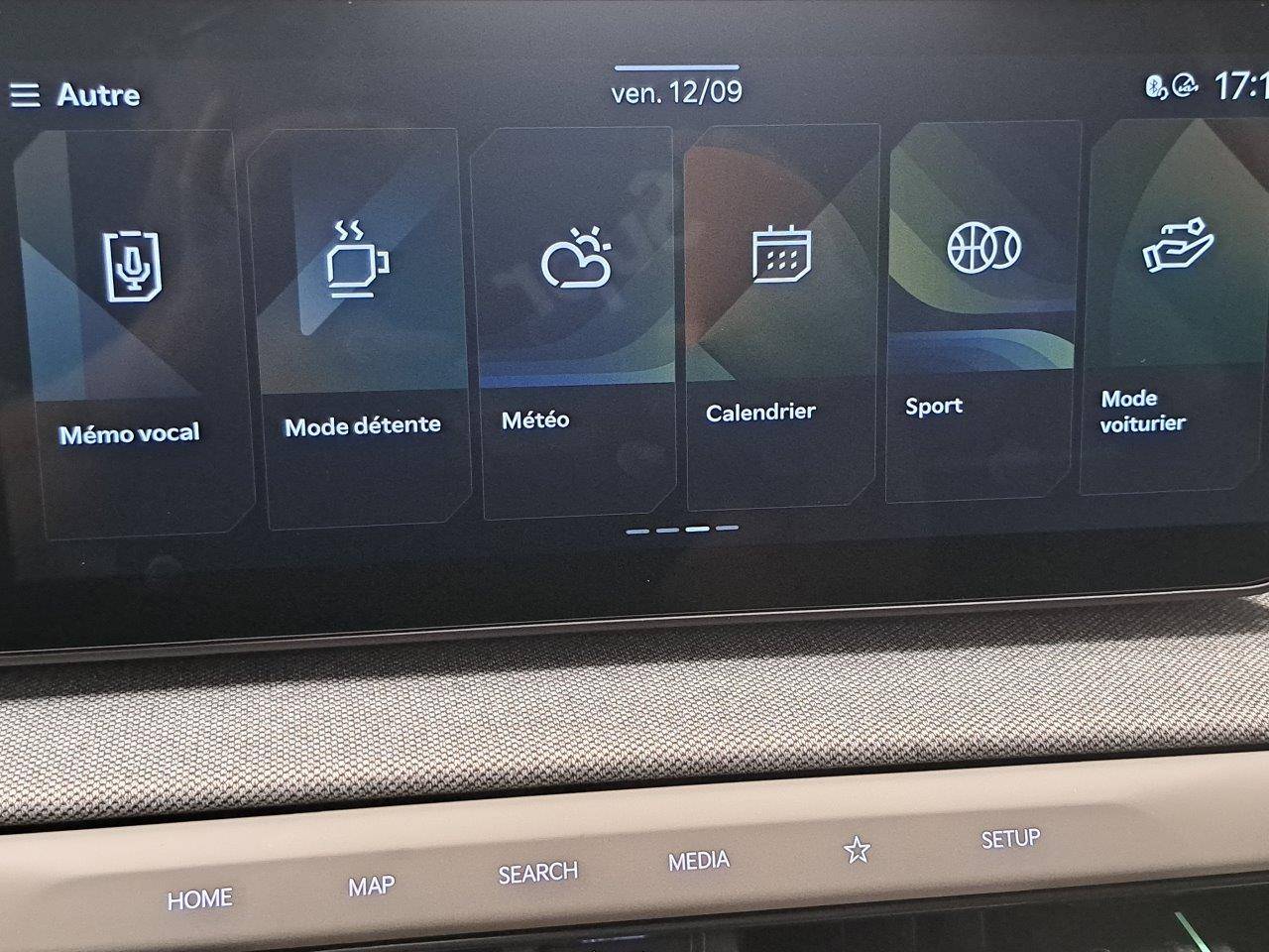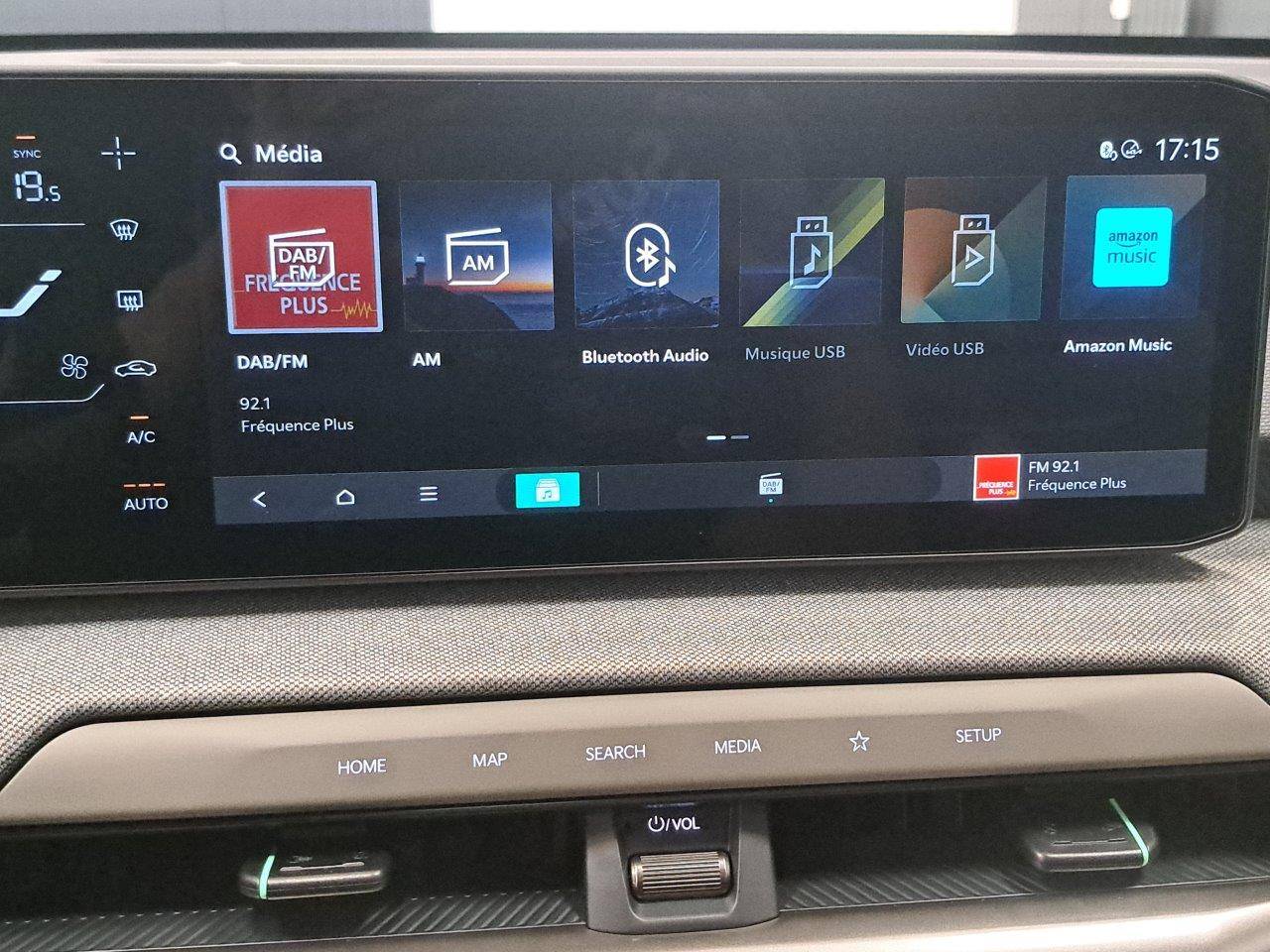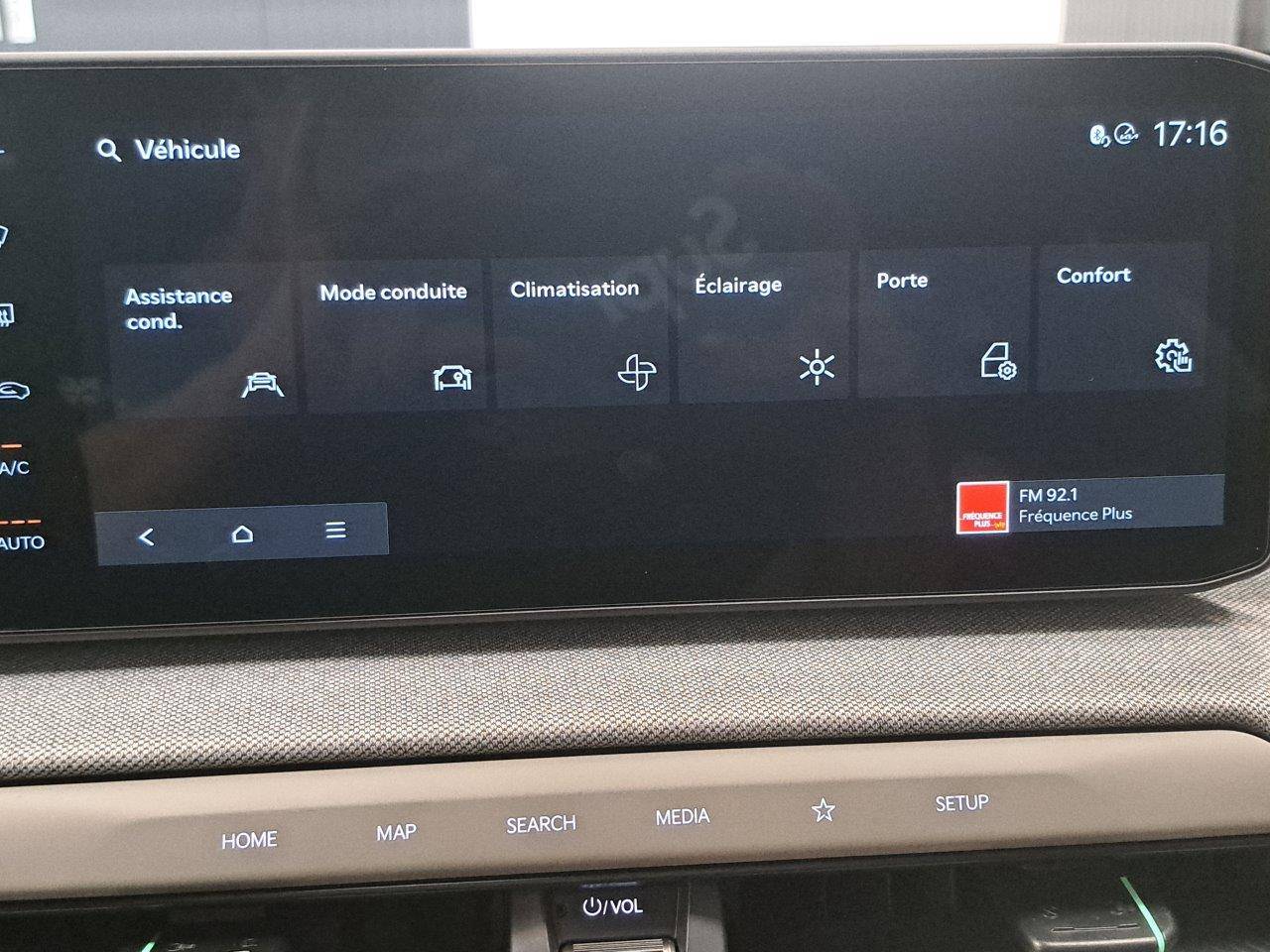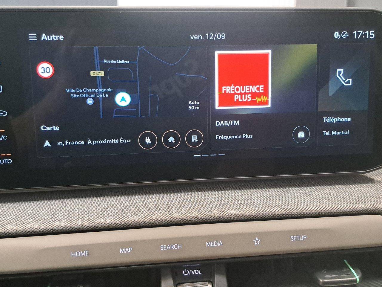 Triple écran panoramique, intégrant un combiné d'instrumentation « Supervision » de 12,3, un écran d'affichage des réglages de confort de 5,3 et un écran tactile d'info-divertissement de 12,3, compatible Android Auto et Apple CarPlay sans fil
