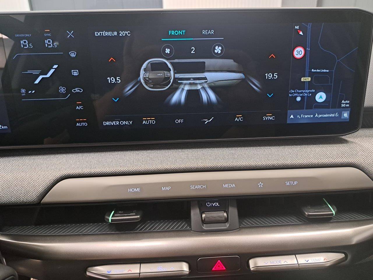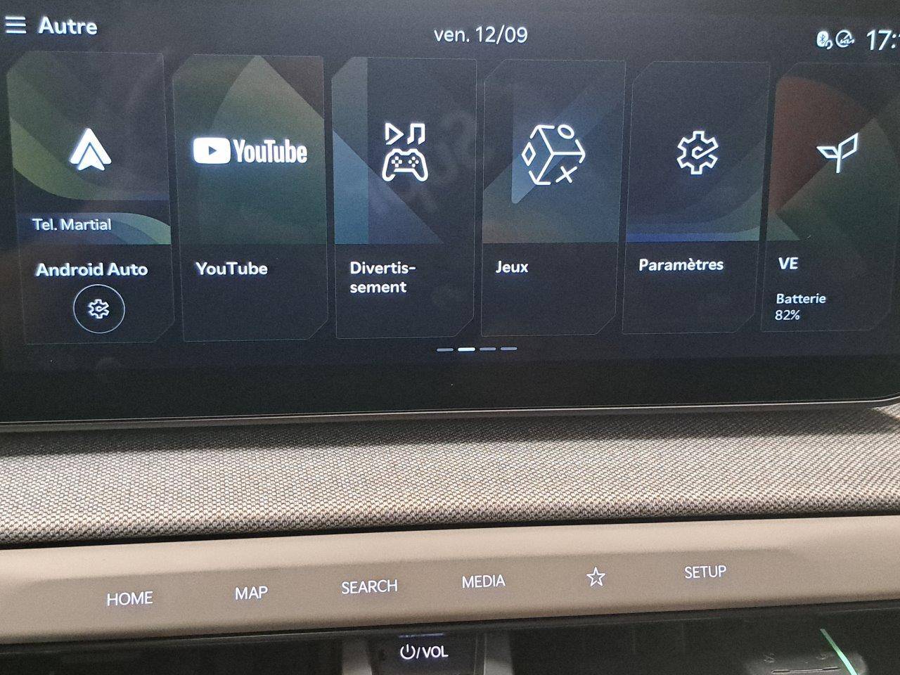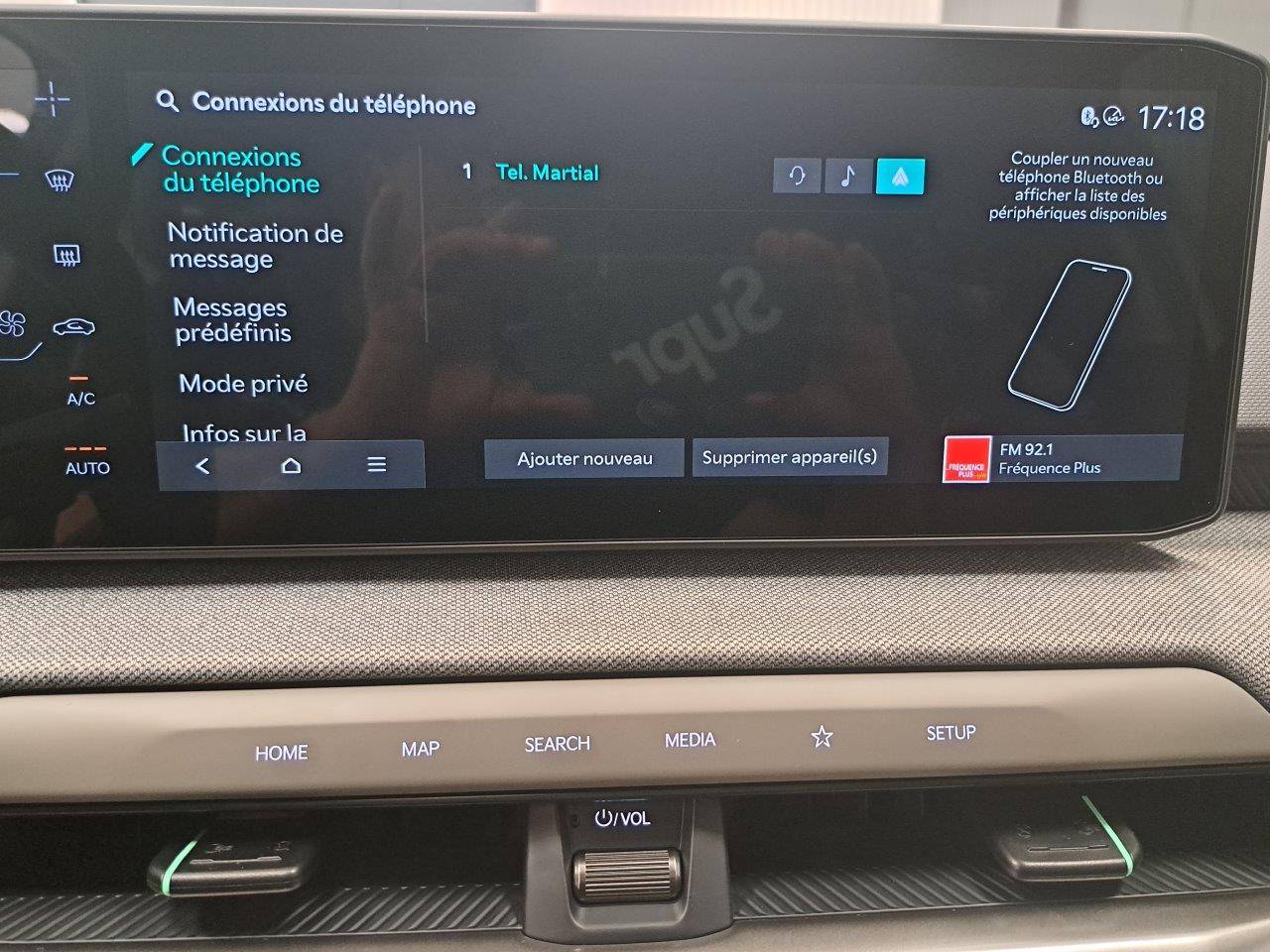 Triple écran panoramique, intégrant un combiné d'instrumentation « Supervision » de 12,3, un écran d'affichage des réglages de confort de 5,3 et un écran tactile d'info-divertissement de 12,3, compatible Android Auto et Apple CarPlay sans fil