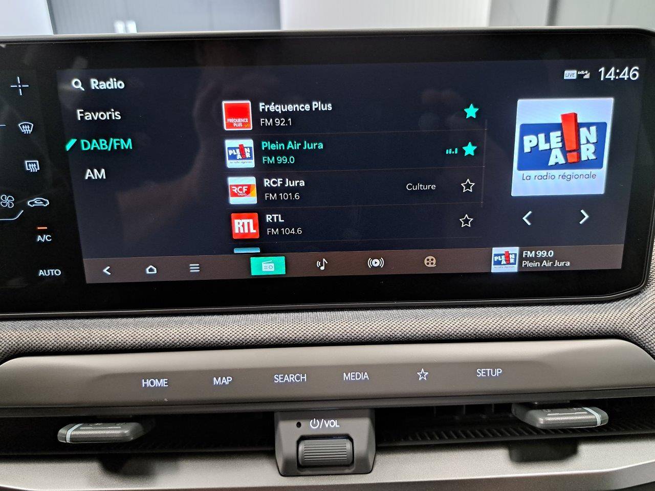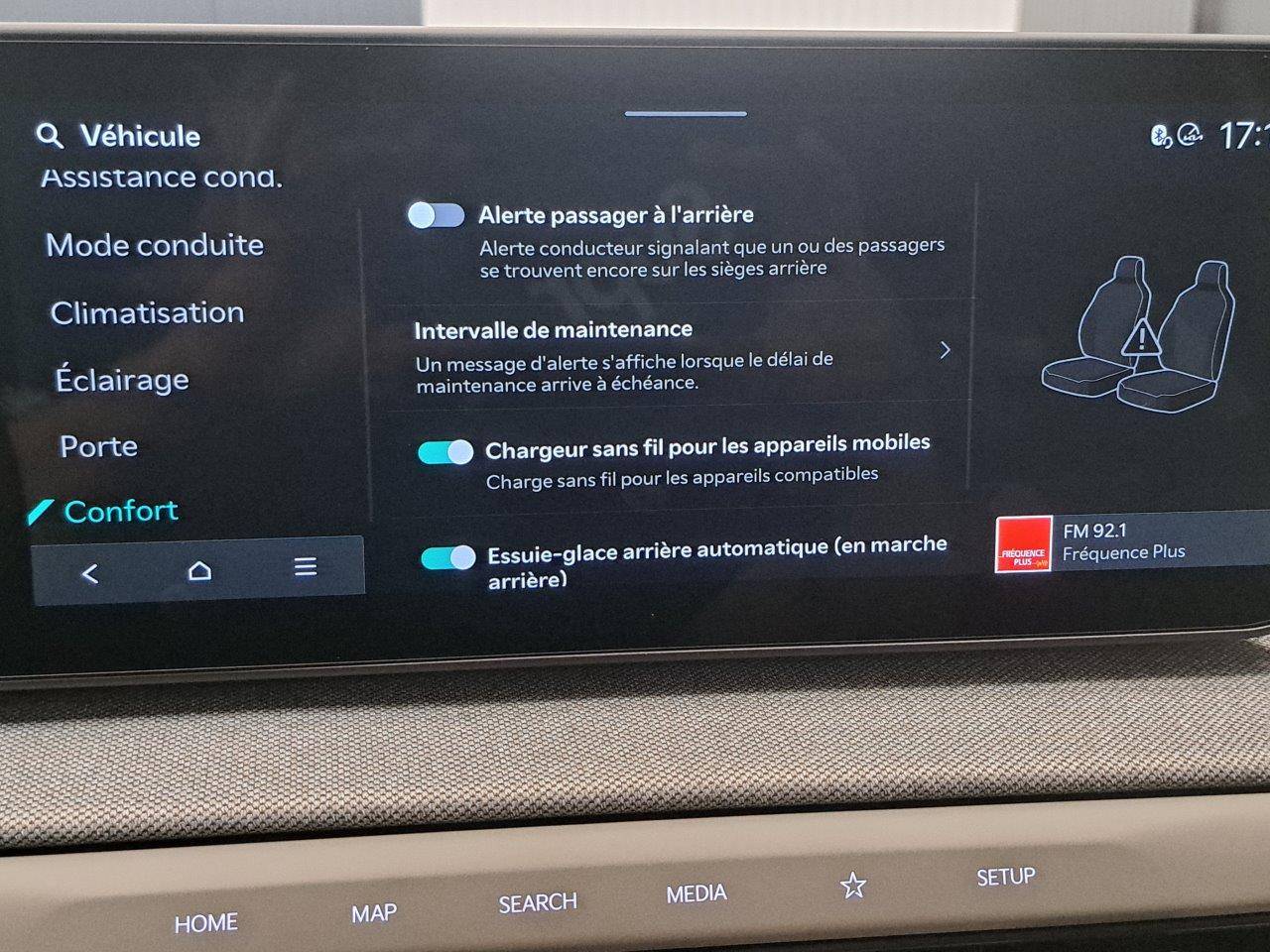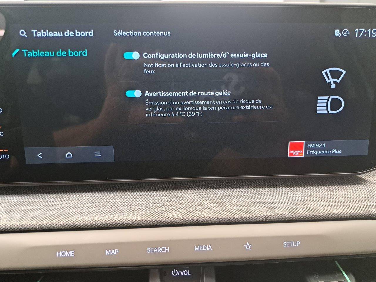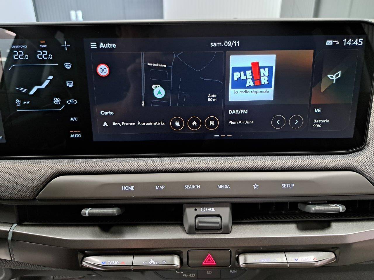 Triple écran panoramique, intégrant un combiné d'instrumentation « Supervision » de 12,3, un écran d'affichage des réglages de confort de 5,3 et un écran tactile d'info-divertissement de 12,3, compatible Android Auto et Apple CarPlay sans fil