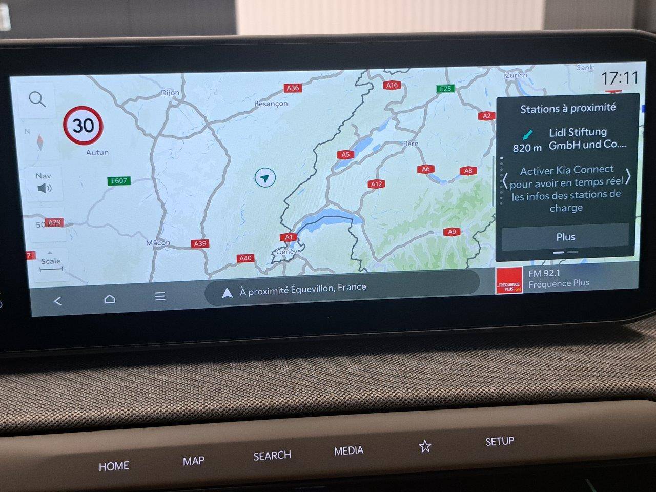 Géolocalisation des bornes de recharge via la navigation embarquée et services connectés Kia Live