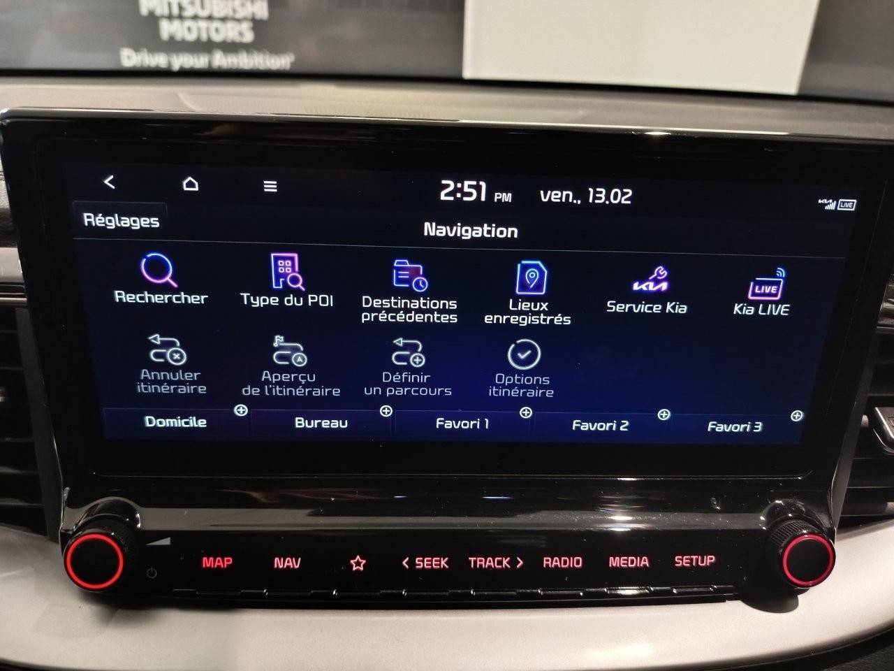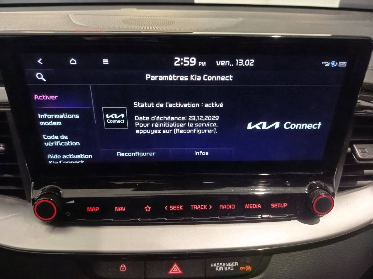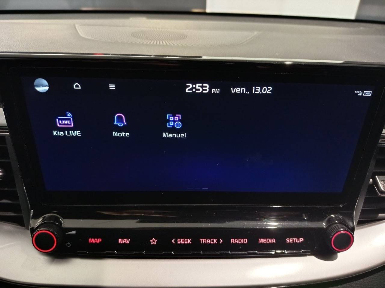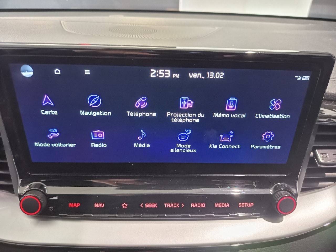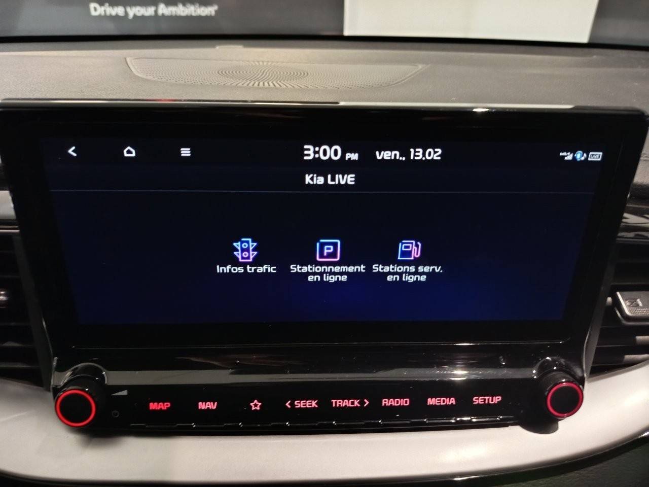 Ecran tactile couleur 10,25'', système de navigation avec cartographie Europe et services connectés Kia Connect Live(1) offerts pendant 7 ans, compatibilité via câble USB Android AutoTM et Apple CarPlayTM
