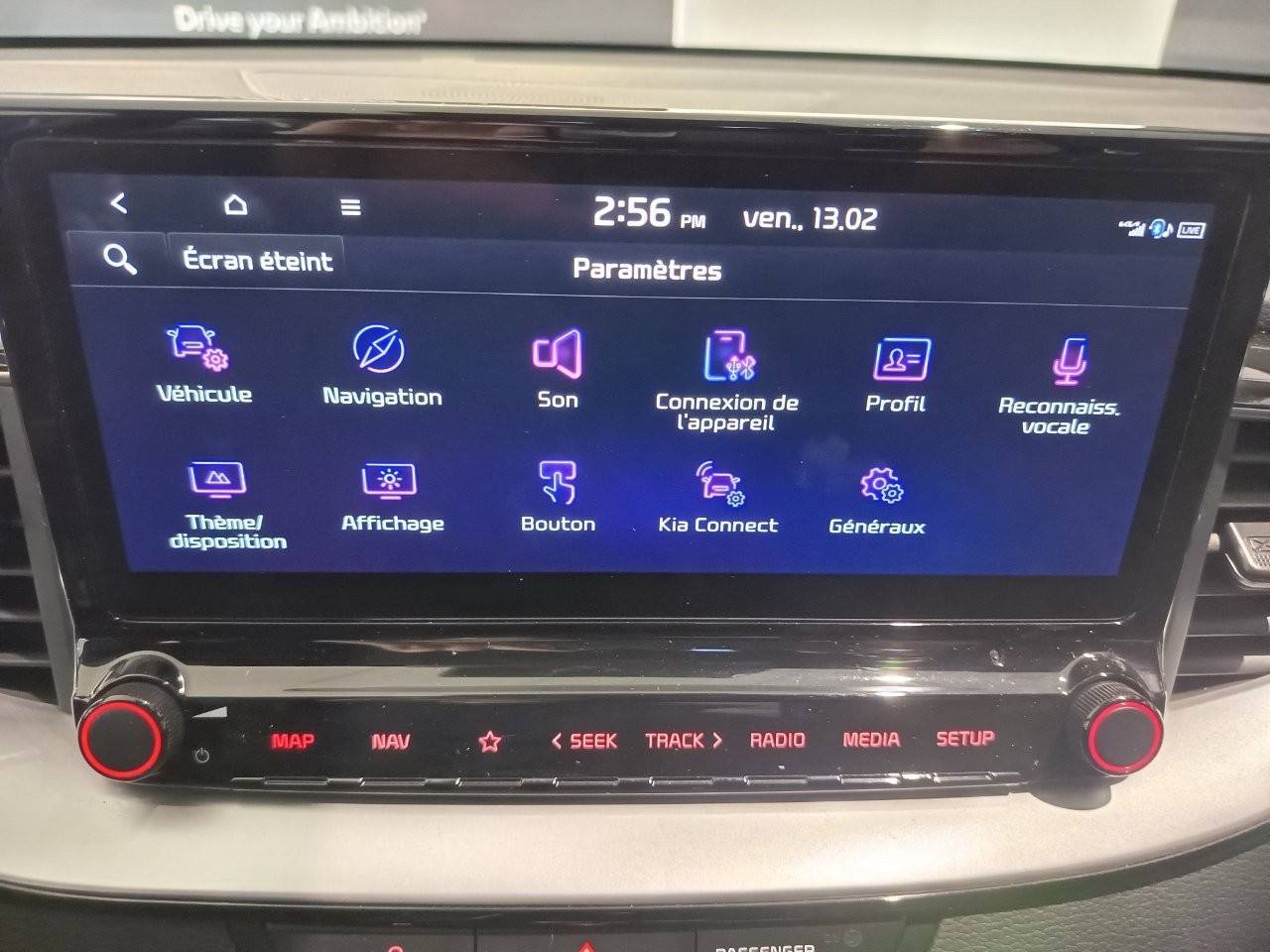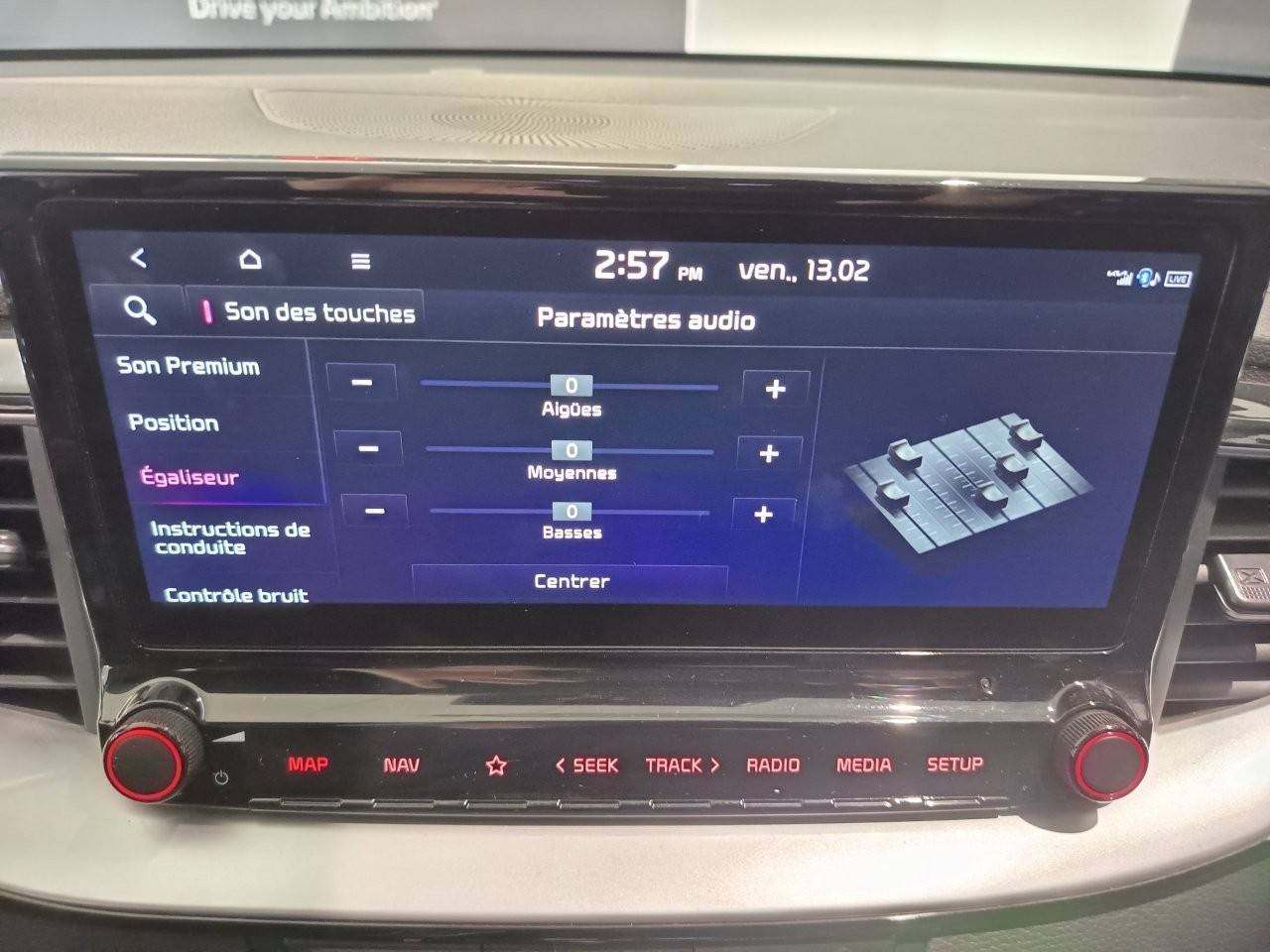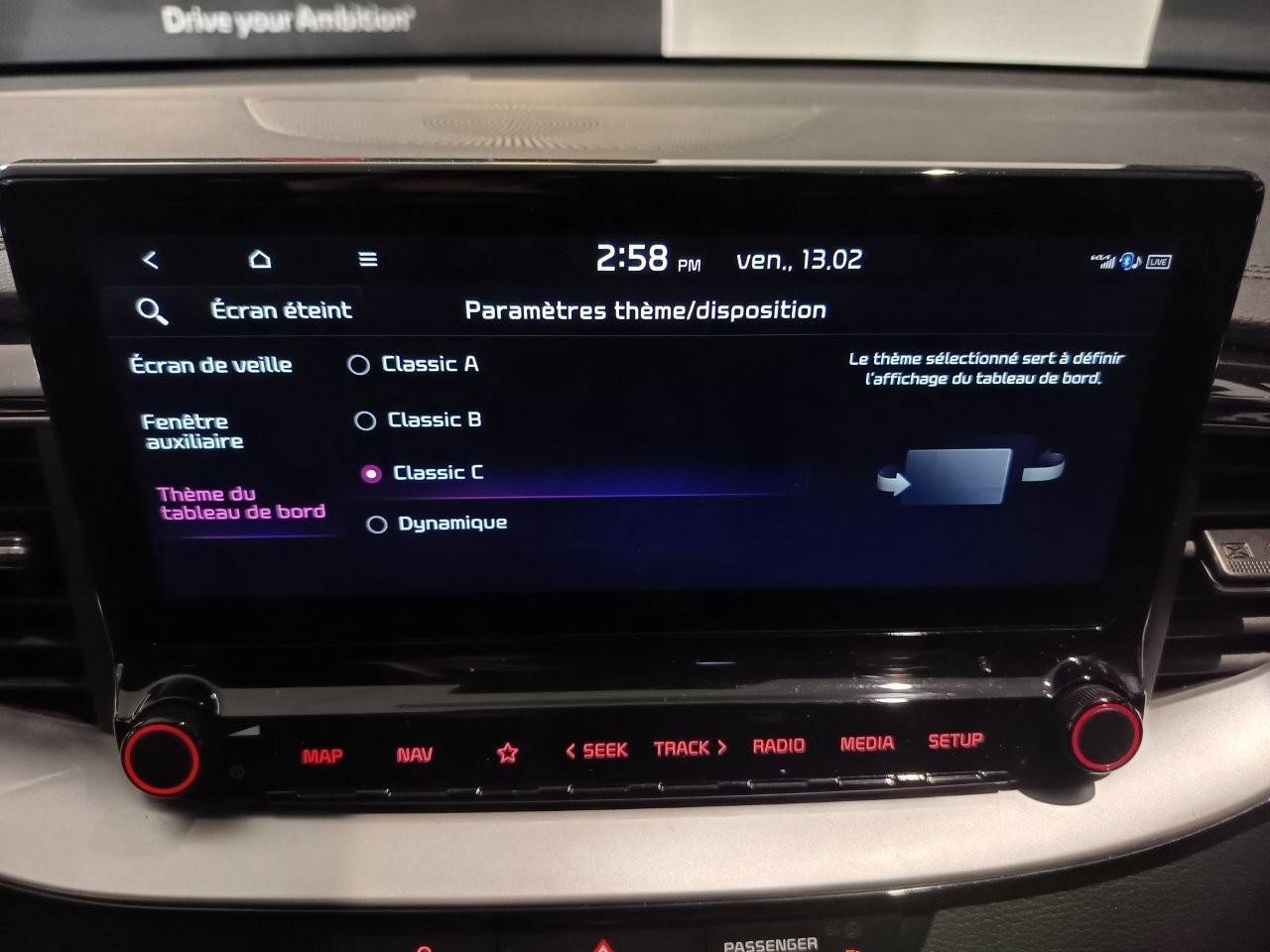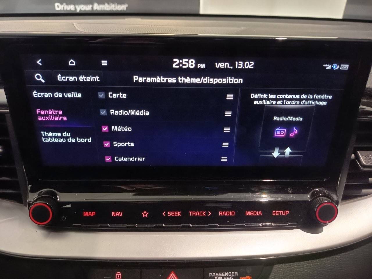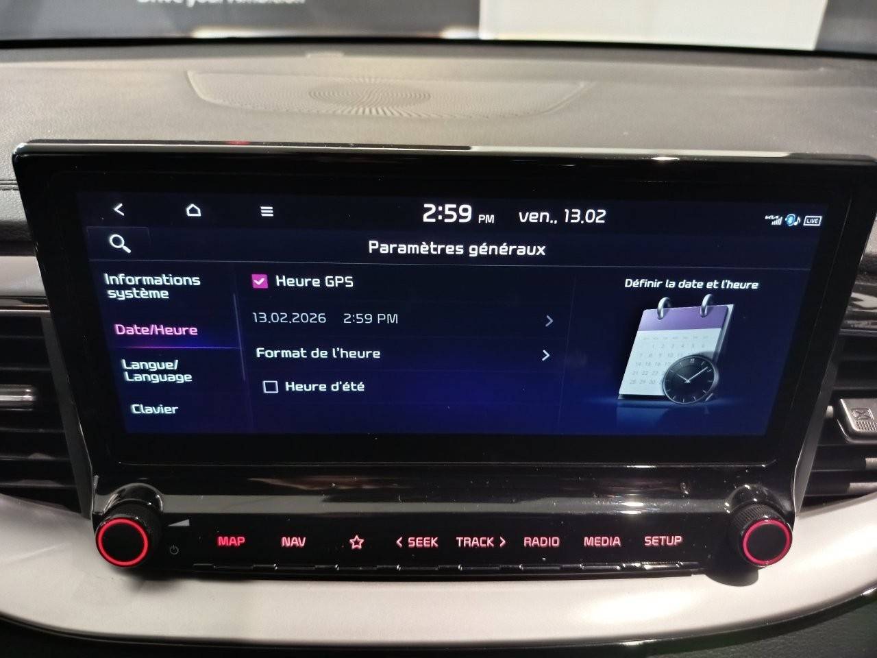 Ecran tactile couleur 10,25'', système de navigation avec cartographie Europe et services connectés Kia Connect Live(1) offerts pendant 7 ans, compatibilité via câble USB Android AutoTM et Apple CarPlayTM