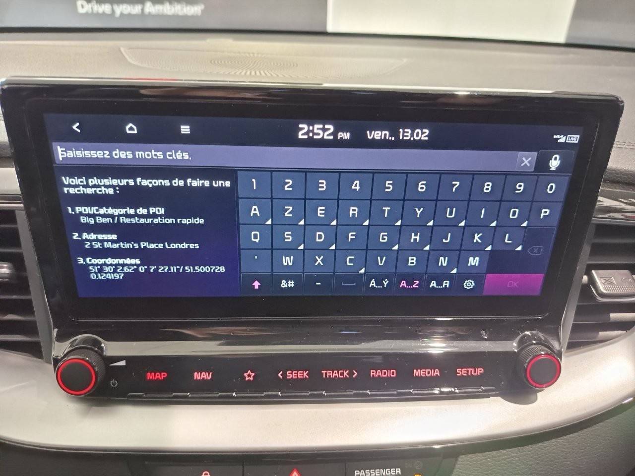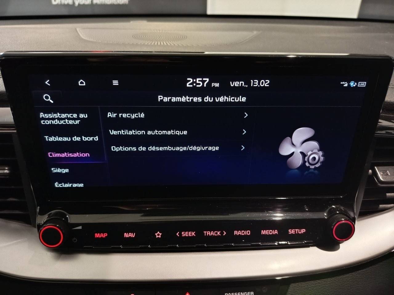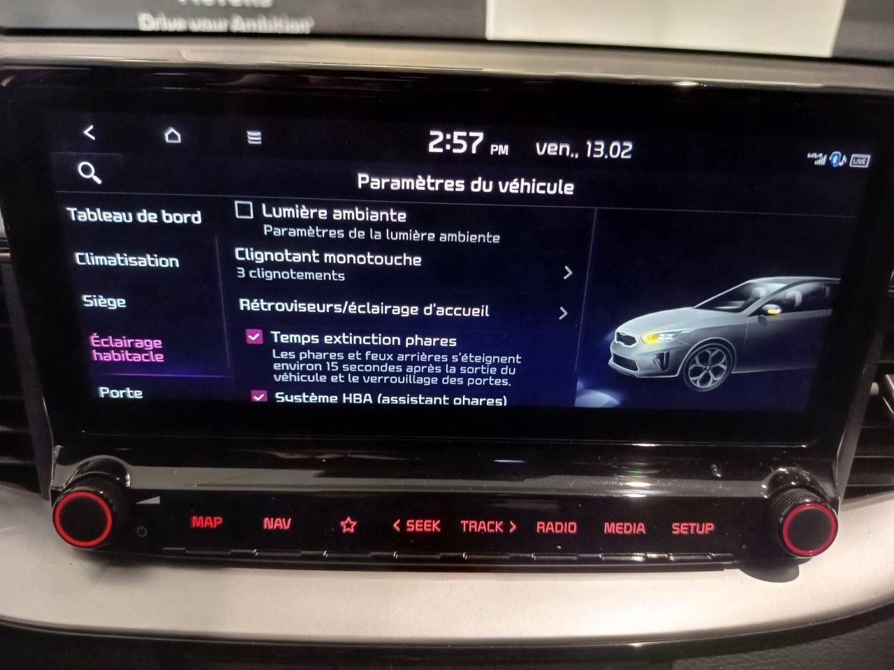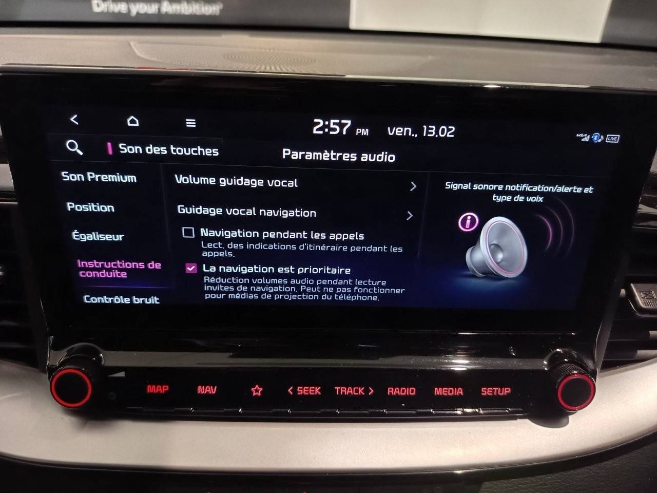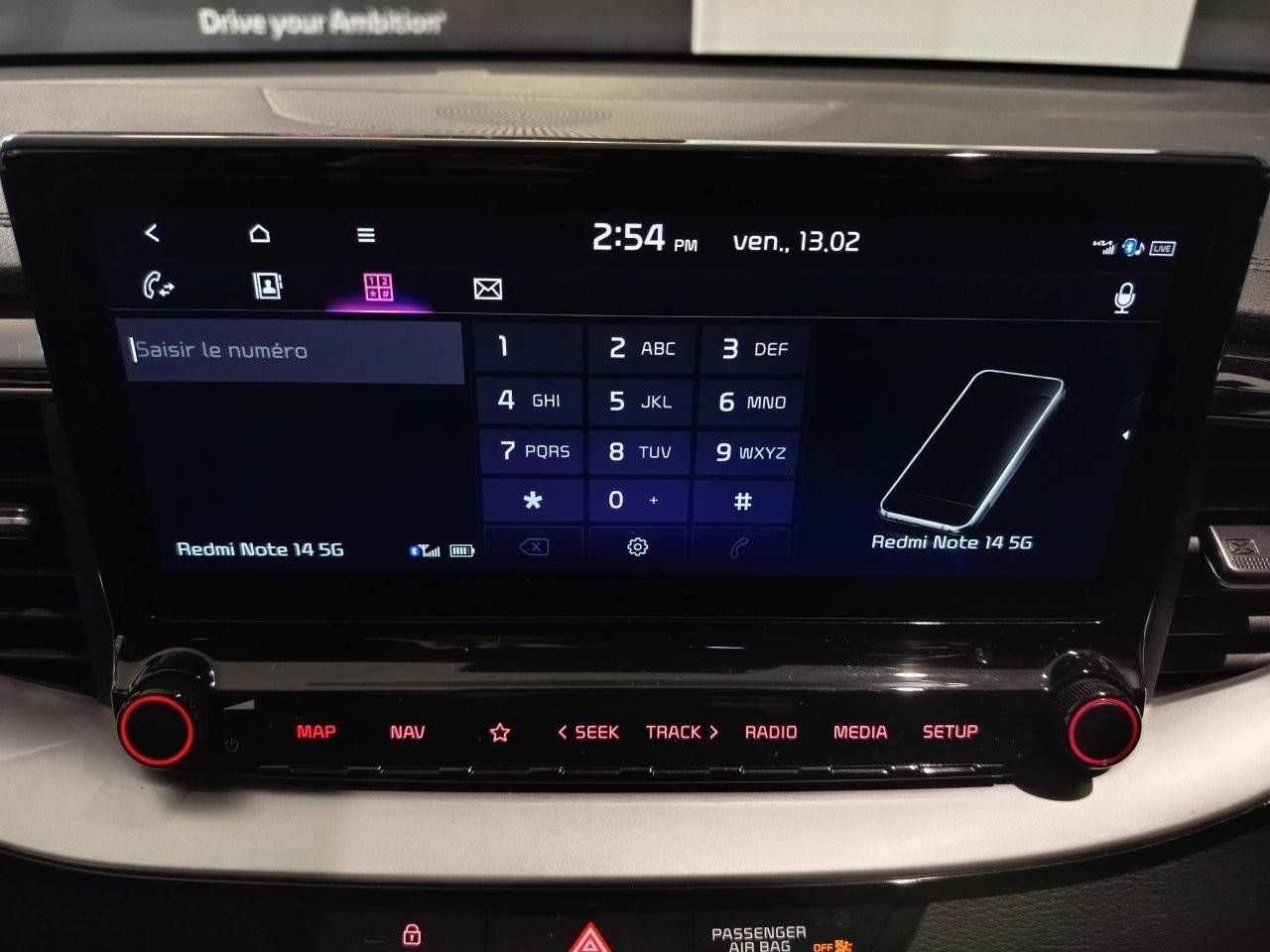 Ecran tactile couleur 10,25'', système de navigation avec cartographie Europe et services connectés Kia Connect Live(1) offerts pendant 7 ans, compatibilité via câble USB Android AutoTM et Apple CarPlayTM